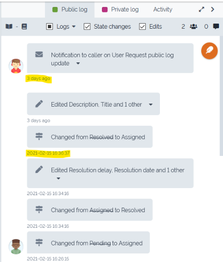 历史记录的时间戳是 相对最近时间, 例如:3天前 ,当超过一周的时间则是绝对时间,除非在你的 iTop 中是不同的配置.