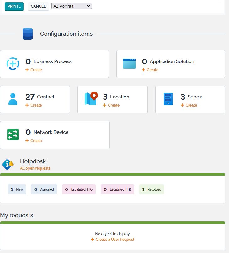 iTop 中的某些页面是仪表盘。仪表盘用于在同一页上显示有关不同 iTop 对象的信息。大多数概览页面以及欢迎页面都是仪表盘。在 iTop 2.0 中,每个用户都可以通过编辑现有的仪表盘页面来定制自己的仪表盘,但是不能够创建新的仪表盘页面。